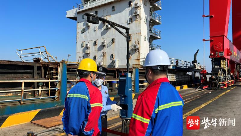 圖為碼頭工人有序使用”電子哨兵“