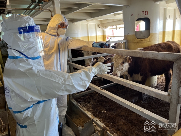 據(jù)了解,該輪從新西蘭納皮爾港出發(fā),歷經15天到達鹽城大豐港,船上運載著荷斯坦、赫里福德、安格斯等種牛5240頭,總價值超1億元。由于活牛的特殊性,滯留港口時間越長,就越容易造成活牛死亡,需要在最短時間內完成卸載。在接到“海洋使者”輪靠泊申請后,鹽城出入境邊防檢查站就立即著手研究制定特殊通關方案,第一時間與聯(lián)檢部門和代理公司取得聯(lián)系,及時掌握船舶、船員、載運種牛及疫情防控等相關情況。