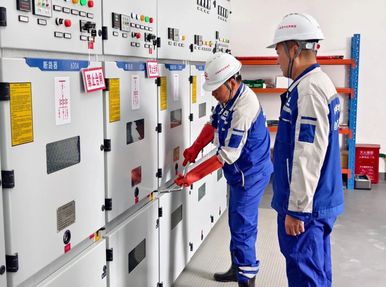 “今天,供電公司對(duì)大豐西站10kv配電所進(jìn)行送電,首先是對(duì)二段母線進(jìn)行送電、驗(yàn)電,在確認(rèn)正確后,再對(duì)一段母線進(jìn)行送電,當(dāng)此線路也確認(rèn)、驗(yàn)電正確后,對(duì)兩段母線進(jìn)行合相,合相正確以后對(duì)變壓器進(jìn)行三次沖擊,沖擊完成無(wú)誤后,便對(duì)通信訊號(hào)、專業(yè)的機(jī)房進(jìn)行送電?!敝需F電氣化局集團(tuán)有限公司大豐港鐵路支線DFGTLSGI標(biāo)項(xiàng)目經(jīng)理部站后分部電力專業(yè)經(jīng)理張勇告訴記者。