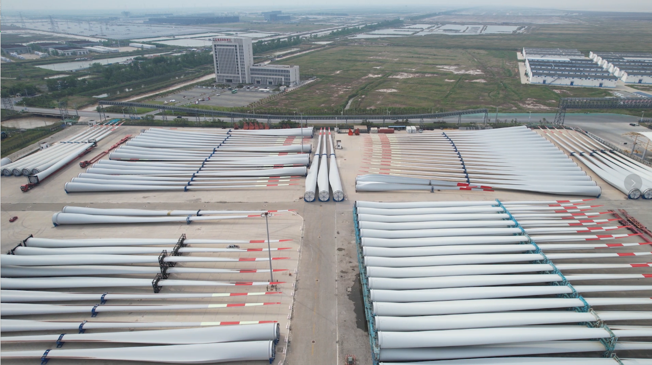 連日來,在鹽城港射陽港區,一輛輛大件運輸車將36套110米超長風電葉片運往碼頭,這些“鹽城制造”正紛紛從港口走出去。