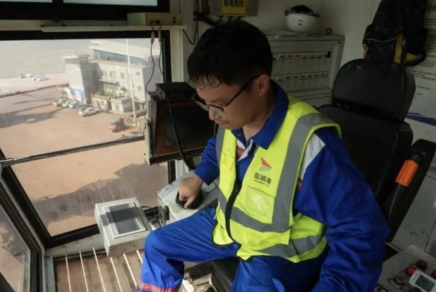 門機全名“門座起重機”,是一種旋轉臂架類有軌運行起重機,主要應用于港口的貨物裝卸工作。作為長三角港口群的一員,大豐港區的碼頭上來往船只不斷,對于碼頭的卸貨效率有極高的要求,門機手的重要性不言而喻。