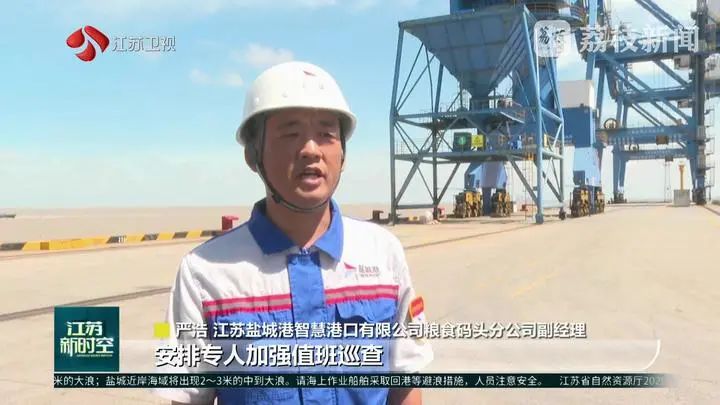 江蘇鹽城港智慧港口有限公司糧食碼頭分公司副經(jīng)理嚴(yán)浩說:“安排專人加強(qiáng)值班巡查,全方位、不間斷地排查隱患,確保各項(xiàng)防護(hù)措施萬無一失。”
