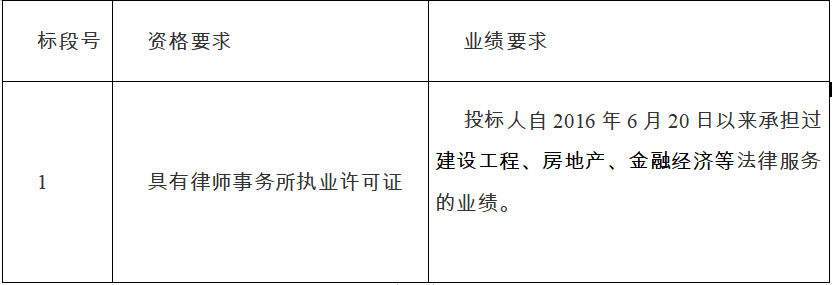2、資質(zhì)要求:具有律師事務(wù)所執(zhí)業(yè)許可證;