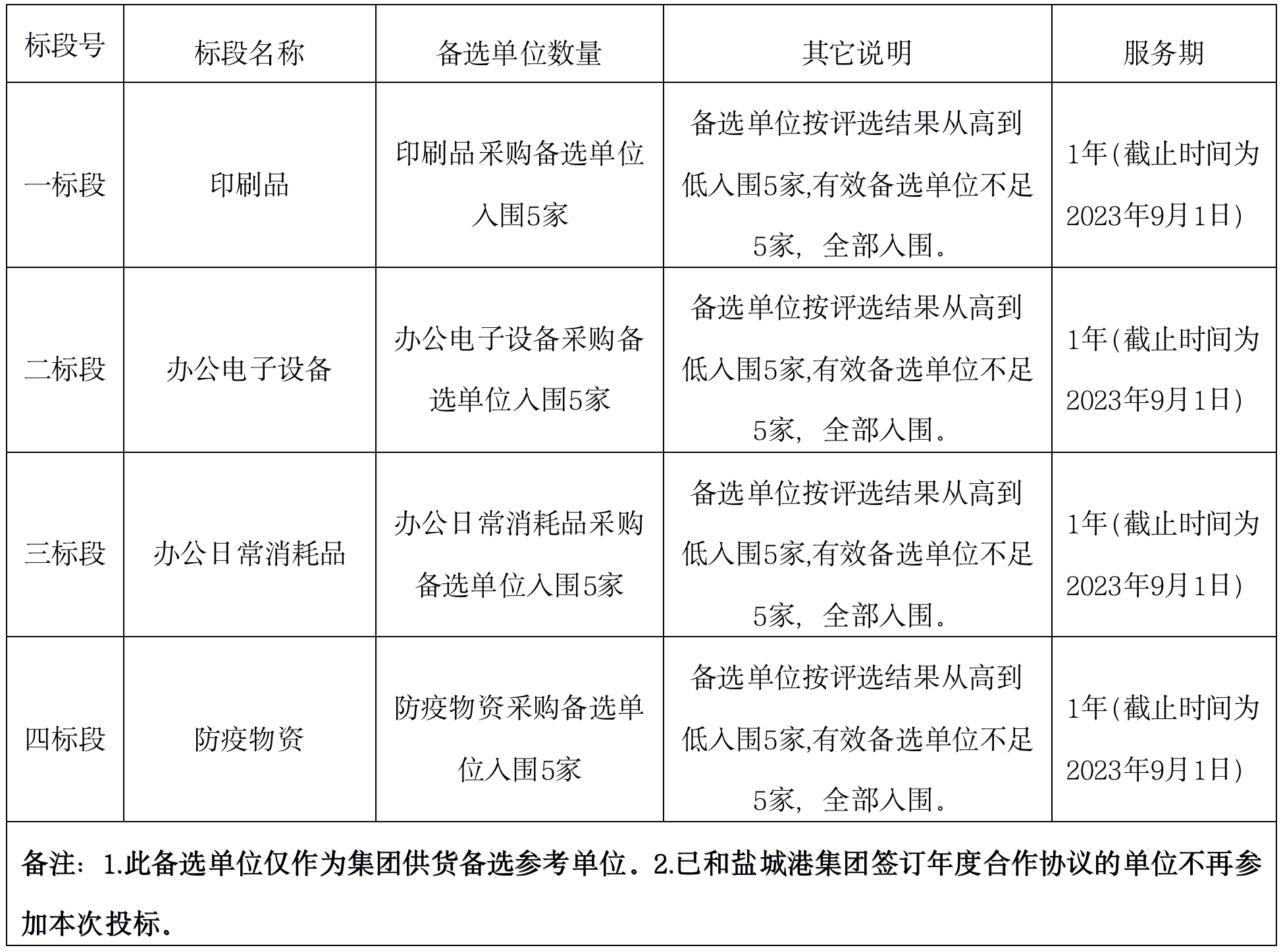 江蘇鹽城港控股集團有限公司2022年度辦公用品采購備選單位擴增項目。