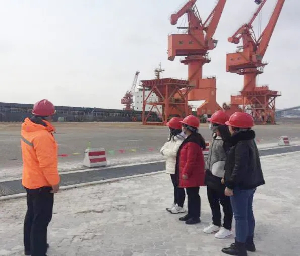 濱海港區(qū)單位女職工在生產(chǎn)經(jīng)營部工作人員的帶領(lǐng)下,學(xué)習(xí)門機進行裝卸作業(yè),了解碼頭從船舶靠岸的前期準備到靠泊后的裝卸作業(yè)的全部流程。