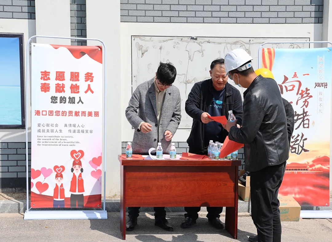 ? ? 為大力弘揚五四精神,5月1日上午,濱海港區(qū)開展“港口因您的貢獻而美麗”主題活動,組織青年志愿者服務隊慰問節(jié)日期間堅守在生產(chǎn)崗位的一線員工,向勞動者致敬。?