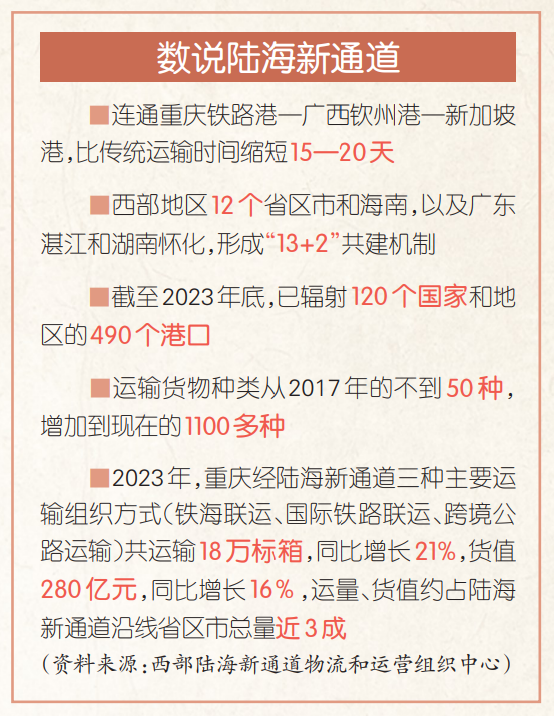 截至2023年底,陸海新通道已輻射120個國家和地區的490個港口,越來越多的國家、地區、企業積極加入到陸海新通道“朋友圈”之中。