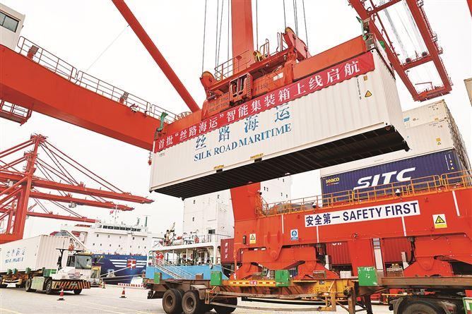 截至目前,“絲路海運(yùn)”命名航線已累計(jì)開(kāi)行超14000艘次,完成集裝箱吞吐量超1660萬(wàn)標(biāo)箱,2條散雜貨航線累計(jì)開(kāi)行近200艘次,貿(mào)易額約115億元;“絲路海運(yùn)”品牌內(nèi)涵持續(xù)延伸,推動(dòng)跨界合作,逐步打造“絲路海運(yùn)+氣象”“絲路海運(yùn)+貿(mào)易”“絲路海運(yùn)+多式聯(lián)運(yùn)”等廣泛且合作共贏的生態(tài)圈。