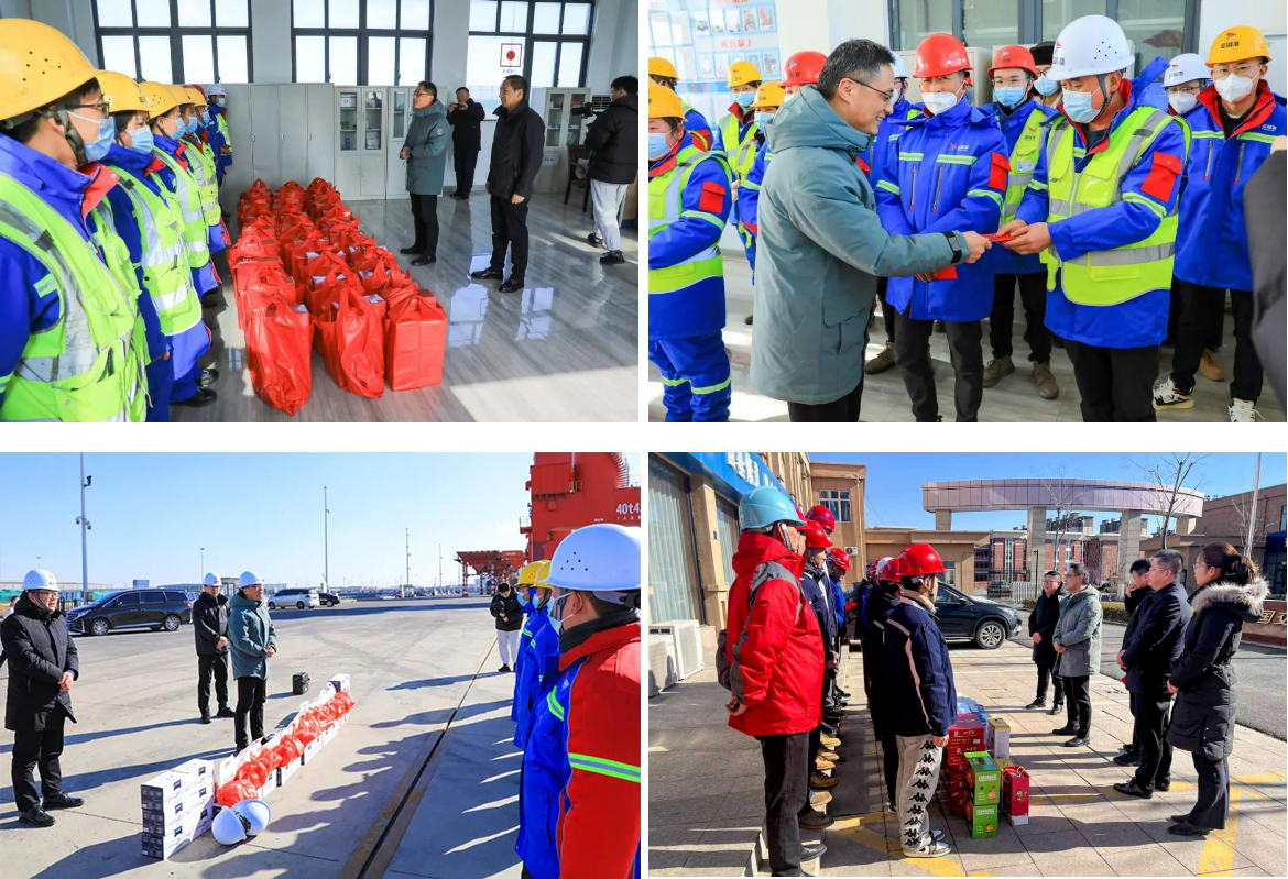 玉兔迎新春,溫暖到一線。受集團黨委、董事會委托,1月23日至24日,集團黨委副書記、董事、總經理陸帥率隊前往鹽城港陸港集團、射陽港區、濱海港區和響水港區,看望慰問春節期間堅守在一線的干部職工。集團黨委委員、副總經理丁安廣、梁洪兵等參加。