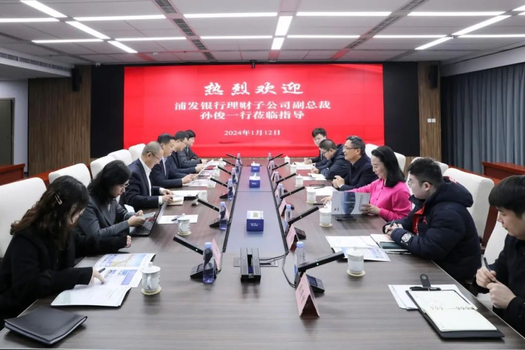 1月12日,浦發(fā)銀行理財(cái)子公司副總裁孫俊率隊(duì)拜訪(fǎng)我集團(tuán),雙方就進(jìn)一步開(kāi)展全面深入的金融合作,推動(dòng)實(shí)現(xiàn)更高質(zhì)量發(fā)展進(jìn)行交流討論,集團(tuán)黨委副書(shū)記、董事、總經(jīng)理陸帥接待孫俊一行。浦發(fā)銀行鹽城分行黨委書(shū)記、行長(zhǎng)李明,集團(tuán)副總經(jīng)理袁欣,集團(tuán)投融資部相關(guān)負(fù)責(zé)同志等參加。
