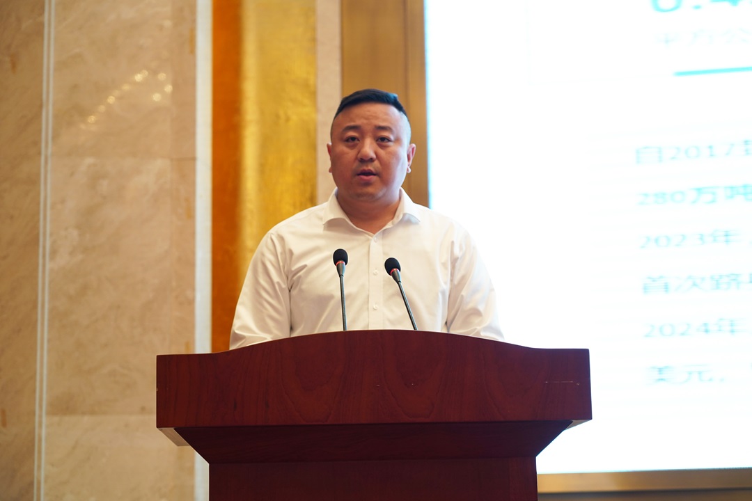 周正雄在致辭中向長期以來關心支持鹽城港發展的各界朋友表示衷心感謝,并介紹鹽城港相關情況。他說,一直以來鹽城港始終以客戶為中心,堅持“算賬式攬貨、定制化服務、分星級定價、一季一走訪、修正式創新、增效益共贏”,積極串聯供應鏈貿易、船貨代、碼頭、倉儲、運輸等全程業務鏈條,推動產業鏈和物流鏈有機結合形成穩定的供應鏈,在此基礎上,通過“供應鏈+金融”,推動產業鏈、物流鏈、供應鏈“三鏈融合”發展,全面提升價值鏈,與在座的各位客戶朋友形成緊密聯系的利益共同體、事業共同體、命運共同體。集團將以今天的活動為契機,進一步強化服務意識,充分發揮港航物流業在區域經濟中的“鏈長”效應,圍繞“全國公鐵河海聯動示范區”建設目標,加快推進沿海港口和內河港口、海上航線與內河航道互連互通,推動“三鏈”融合發展,讓“港口流量”變區域“經濟增量”。期待與各界伙伴進一步加強交流、創造條件、共享機遇,攜手共贏、共創未來。