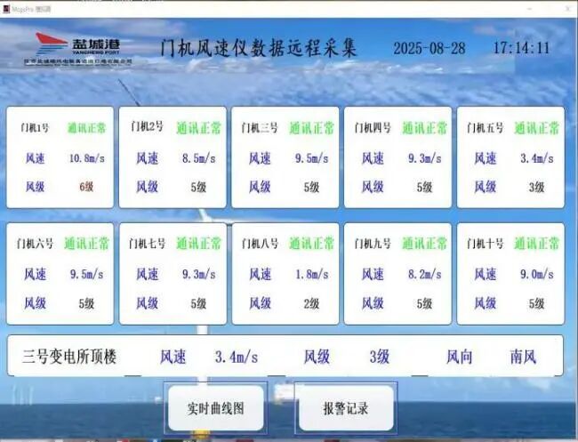 以往,門機實時風(fēng)速數(shù)據(jù)僅能在司機室查看,值班室調(diào)度人員、現(xiàn)場管理人員無法同步獲取,存在信息滯后導(dǎo)致的安全風(fēng)險。通過加裝高精度風(fēng)速傳感器,搭配低延遲無線傳輸模塊,將風(fēng)速數(shù)據(jù)實時推送至值班室監(jiān)控大屏與管理人員手機客戶端,數(shù)據(jù)傳輸延遲控制在3秒以內(nèi)。不僅避免了人工登高查看風(fēng)速的安全隱患,更降低了因風(fēng)速突變導(dǎo)致的設(shè)備損壞、貨物損耗風(fēng)險,顯著提升港口安全智能化管理水平。