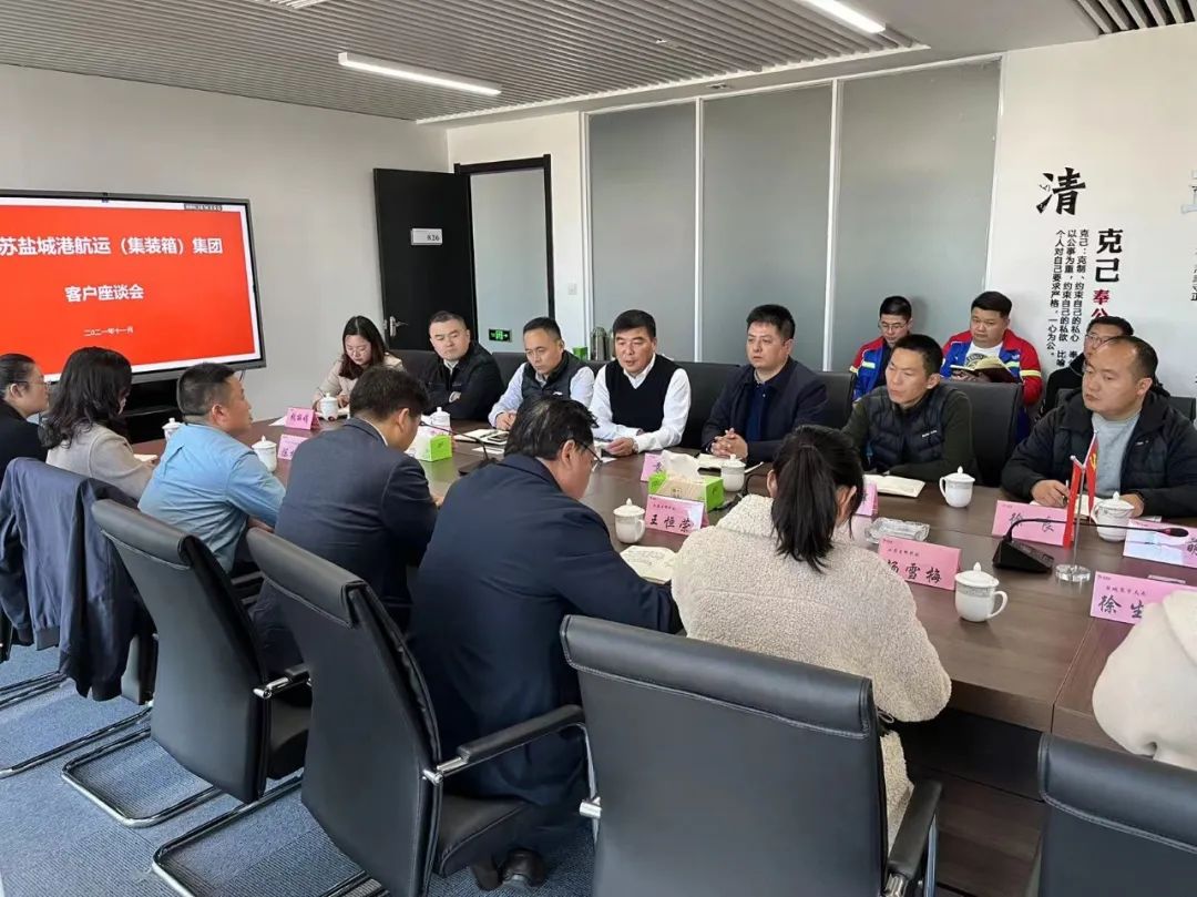 11月12日下午,航運(集裝箱)集團召開年度客戶座談會,邀請江蘇坤歌智能科技、阿特斯陽光電力等眾多合作客戶企業(yè)代表到場參會。本次會議以“協(xié)同合作、共促發(fā)展”為主題,展示了航運(集裝箱)集團2021年期間在航線開辟、碼頭建設、市場開拓等方面取得的工作成效,同時廣泛征集2022年度工作部署實施意見。