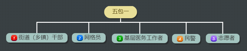 3.社區(qū)防控“五包一”:1名街道或鄉(xiāng)鎮(zhèn)干部、1名社區(qū)網(wǎng)格員、1名基層醫(yī)療衛(wèi)生機(jī)構(gòu)服務(wù)人員、1名社區(qū)民警、1名及以上志愿服務(wù)者,開(kāi)展社區(qū)防控工作。