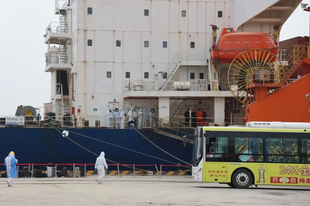 為確保中國船員換班工作“零等待”“零延時”,濱海港區(qū)第一時間啟動船員換班閉環(huán)管控工作流程和應(yīng)急處置流程,與濱海縣聯(lián)防聯(lián)控機制各成員單位協(xié)同配合,確保換班中國船員自國門至家門的全程閉環(huán)管理。讓船員感受到回到家的溫暖。