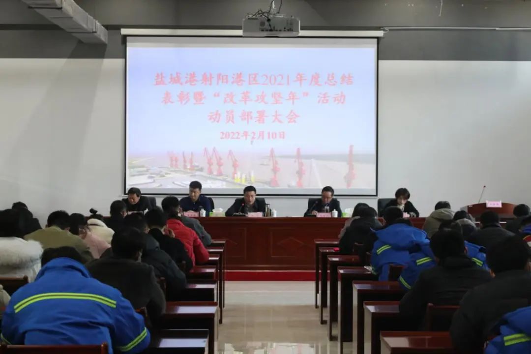 會議指出,2021年射陽港區在鹽城港集團黨委、董事會的堅強領導下,堅定不移錨定打造新能源(風電)特色產業港的目標定位,聚焦“六航”主題,聚力“六抓”主業,科學統籌推進各項工作,在鹽城港高質量發展新征程的開局之年創造了優良的業績。2022年射陽港區將突出“兩大主題”,緊緊圍繞“咬定一個目標,實現兩個超越,提升三項水平”總體思路,提振精氣神,重實干、出實招、辦實事、求實效,始終保持一往無前的奮斗姿態,心無旁騖聚焦主業,勇立潮頭再創佳績,為鹽城港高質量發展添磚加瓦。