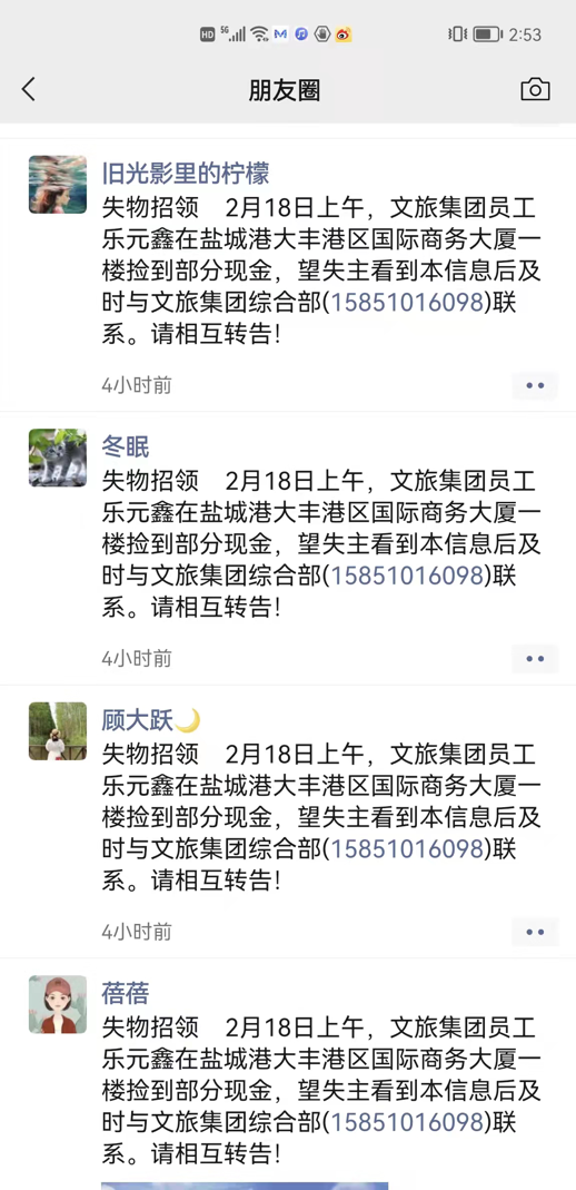 “看到微信朋友圈滿屏的失物招領信息,我才發現原來是我自己的錢丟了,真是太感謝了。”這是近日,一位在大豐港區成功通過微信朋友圈找回丟失現金的失主發出的感慨。