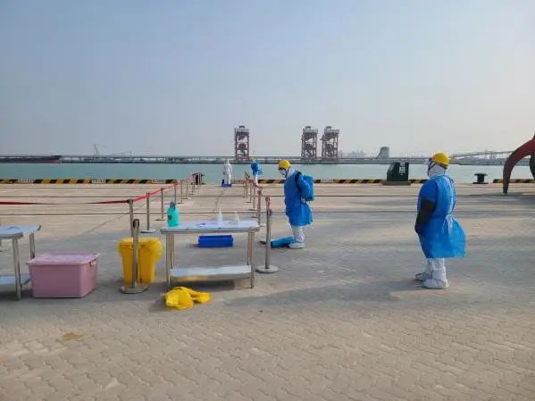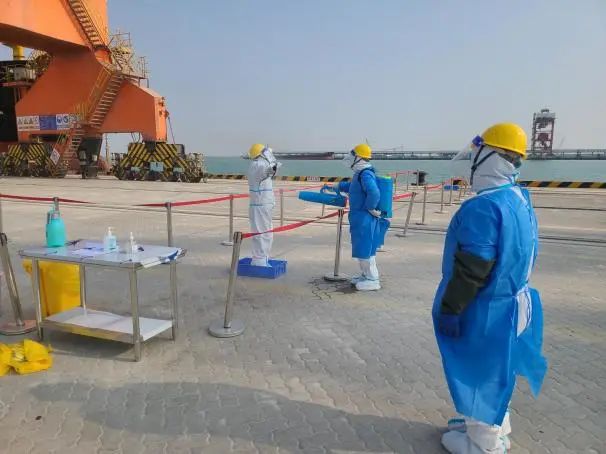 本次演練模擬了濱海港區通用碼頭2號泊位發現疫情之后的相關處置流程。演練中,碼頭發現疫情后,及時將情況進行上報,并立即停止作業,同時迅速對登船人員進行排查,就地隔離,開展現場消殺工作。現場成立疫情防控應急指揮部,按照指揮部的統一調度,開展應急處置,經過妥善處理,演練中的疫情得到有效控制,同時對碼頭作業人員嚴格執行“N+7+7”的閉環管理,確保濱海港區碼頭盡快恢復正常生產。