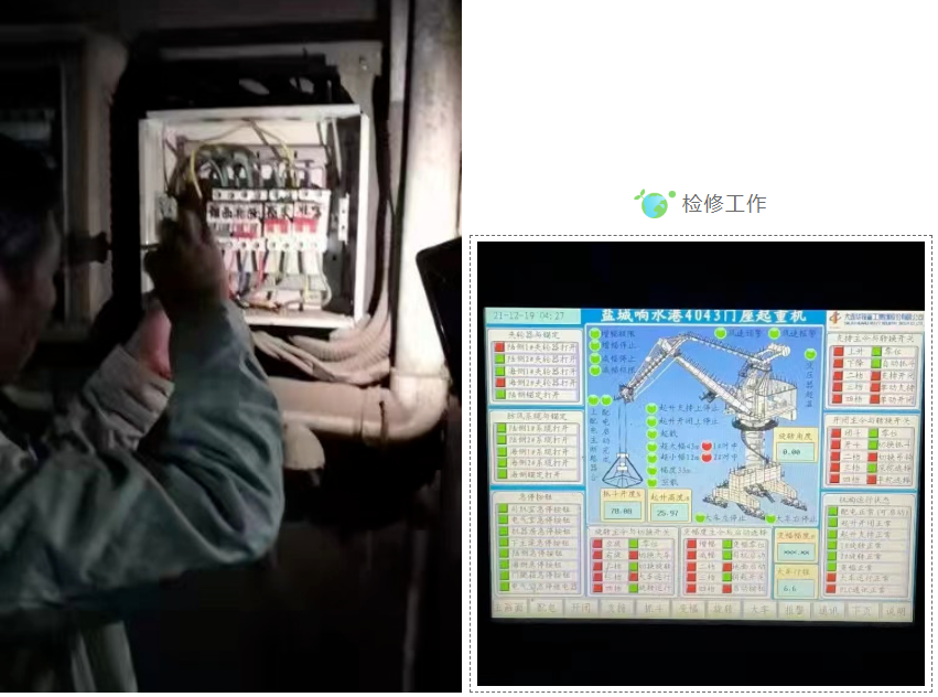 夜班值班維修人員接到報修后,第一時間來到設備上進行檢修,但經過半個多小時的排故仍未能準確判斷出故障所在,夜班值班修理工沒有盲目自信,深知修復時間對保障生產的重要性,迅速向技術部主管領導進行了匯報,請求技術支援,而此時已近凌晨,技術部接到匯報后,立刻來到故障現場,對故障現狀特性進行充分分析后,結合自身多年門機維護經驗,對可能產生故障現象的電控系統有條不紊地采用實施了分區分塊逐步檢查的方式進行排查故障原因,經過一個多小時的奮戰,故障終于被順利排除,門機再次投入生產運行,最終大輪于凌晨4:20順利完工,順利兌現了完工時間。