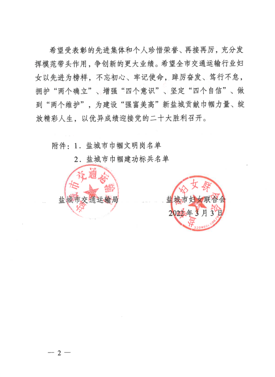 近日,市婦聯(lián)、市交通運輸局聯(lián)合發(fā)布《關(guān)于表彰全市交通運輸行業(yè)婦女崗位建功先進集體(個人)的決定》,鹽城港港口公司“海燕”班組榮獲“鹽城市巾幗文明崗”榮譽稱號。