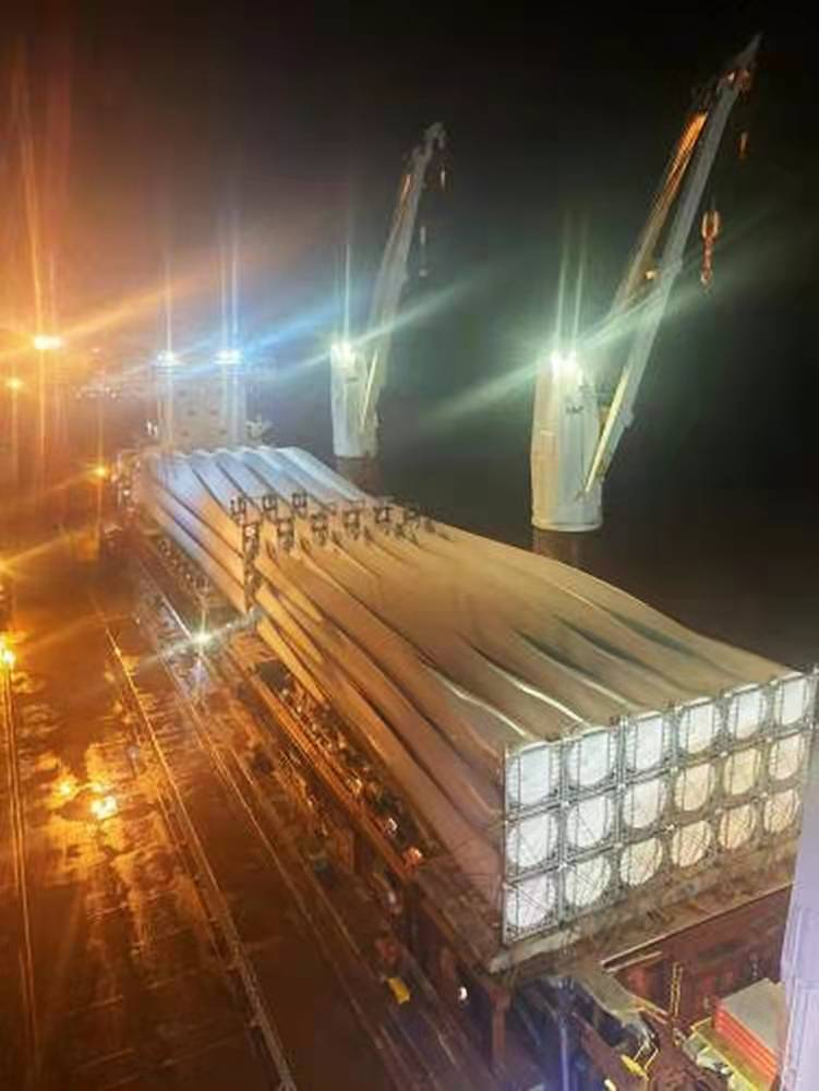 自大件班組組建以來,王靜一直刻苦學習大件吊裝相關知識。2016年5月,中遠航運“大昌輪”靠泊通用碼頭,他參與現場指揮,整船承運風電設備8.5萬方,創造了當時世界重吊船和多用途船承運風電設備單船貨量最大和總體積最大的“世界紀錄”。2018年12月,至憲公司風電出口項目,他參與制定裝卸工藝并現場指揮,單船裝載156件風電葉片12萬方,再次刷新全球單船裝載葉片總件數和總方數的“世界紀錄”,為鹽城沿海發展和風電產業增添了濃墨重彩的一筆。多年來,通用碼頭分公司重大件組攻堅克難,規范裝卸,一直保持零貨損、零投訴的良好成績,并且不斷刷新“世界紀錄”,成為國內同行業的標桿,為公司的發展作出了巨大貢獻。