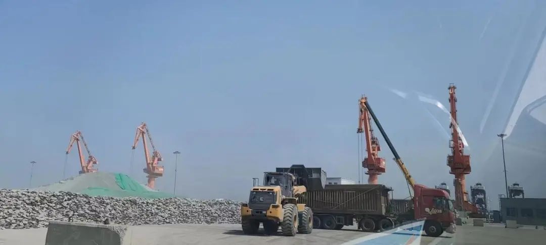 碼頭上,車來車往,裝船卸船,一片繁忙。一線員工們各司其職,熟練地操作著機械設(shè)備,現(xiàn)場作業(yè)井然有序。