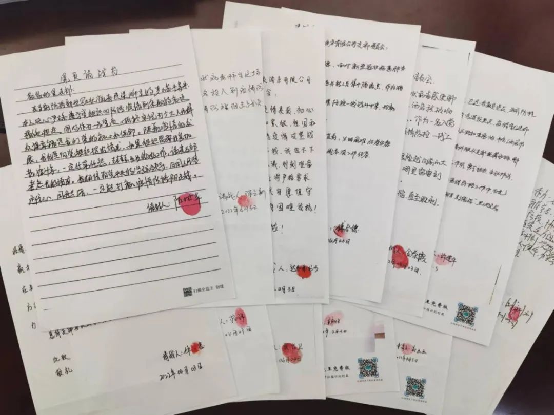 “我請愿:自愿參加酒店一線防疫工作,充分發揮黨員先鋒帶頭作用,堅決打贏疫情防控阻擊戰。”“我請愿:做嚴明紀律的踐行者,做擔當履職的戰斗員,請領導批準我參與此次隔離任務。”“我是一名入黨積極分子,我志愿參與酒店疫情防控任務,請讓我上一線”……一封封按著紅色手印的《請戰書》被遞交到鹽城港文旅集團旗下半島溫泉酒店黨支部。