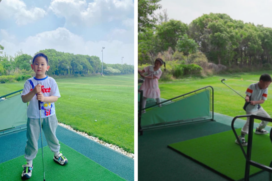 高爾夫,作為一項歷史悠久的體育運動,因場地和環境的要求,我們平常不能輕易接觸到這項運動。在訓練中心,小朋友們聽教練介紹了高爾夫知識,“雙手點個贊,左手握住球桿,左手拇指放在右手生命線上,兩個手臂與球桿形成大寫字母Y,揮桿時手成L形,雙腿與肩同寬……”聽著教練的講解,看著教練的示范,小朋友們躍躍欲試。