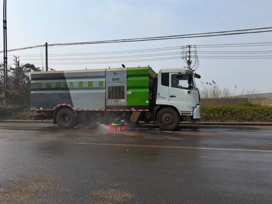 Hi!大家好。我是來自鹽城港港口公司的一臺環保洗掃車,別看我和普通環保車的外觀差不多,我的工作任務可和它們不一樣,我每天要對鹽城港大豐港區道路進行洗掃作業和防塵抑塵。我是清潔工作中的好幫手,每天都讓港區恢復煥然一新。