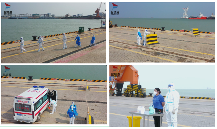 演練模擬來自巴拿馬籍奧泰號外輪裝載2萬噸鎳鐵到達濱海港區2號錨地靠泊期間發現新冠病毒核酸初篩結果為陽性的3例人員的情況,采取一系列規范應急處置防控措施。演練四方在發生疫情險情后,沉著應對,上下協同,多方聯動,及時管控人員,按照高、中、低風險區域防范,規范消毒,救護車準時到點。整個演練現場井然有序,醫護人員們衣著規范,忙而不亂。在面對近40度天氣的高溫酷暑天氣下,參加演練人員精神振奮、士氣高昂,真正達到了“以演促練以練備戰”的目的,充分展示了濱海港區新冠疫情防控人員良好的專業素質和精神風貌。