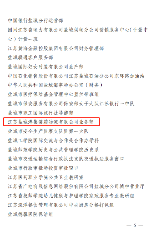 近日,市總工會發布《關于表揚鹽城市女職工先進集體和先進個人的決定》,袁欣同志、江蘇鹽城港集裝箱物流有限公司業務部,分別獲得“鹽城市五一巾幗標兵”“鹽城市五一巾幗標兵崗”榮譽稱號。