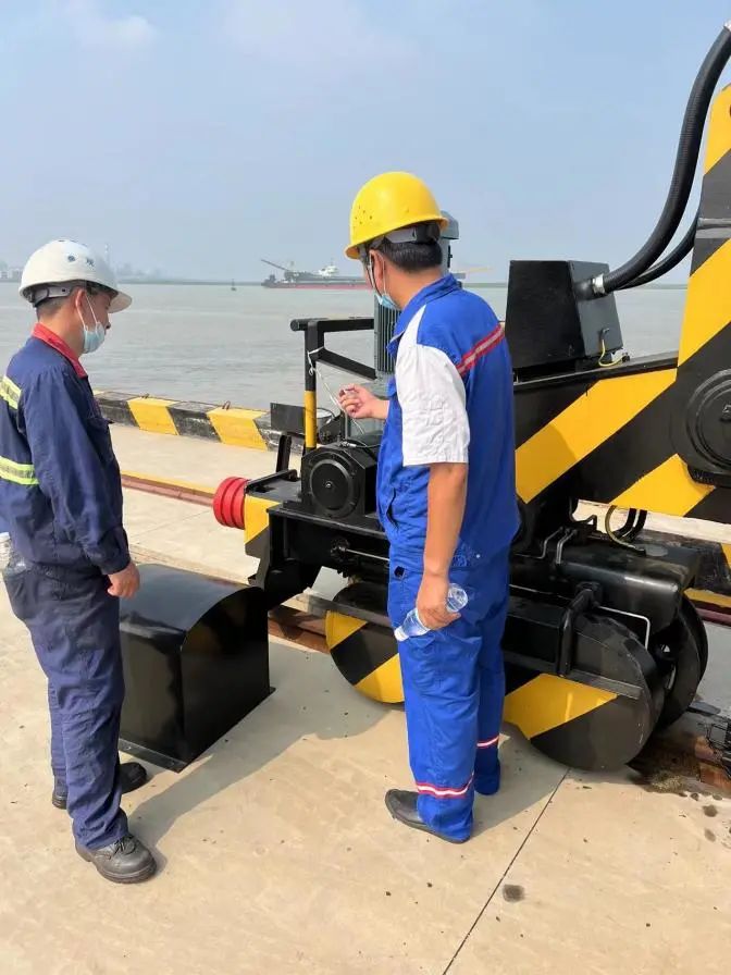 門機(jī)設(shè)備裝置涵蓋了電氣、機(jī)械、油路等眾多類型,回路復(fù)雜,工藝繁瑣,如細(xì)節(jié)處理不到位,后期極有可能存在作業(yè)隱患。自重件碼頭項(xiàng)目組裝工作開(kāi)展以來(lái),專項(xiàng)工作組成員頂著酷暑不懼“烤”驗(yàn),克服時(shí)間緊、任務(wù)重、人手少的實(shí)際困難,堅(jiān)持經(jīng)常性現(xiàn)場(chǎng)巡檢,保證每個(gè)關(guān)鍵項(xiàng)目都有現(xiàn)場(chǎng)督查,每個(gè)部件交付都安排相應(yīng)崗位人員參培。對(duì)在現(xiàn)場(chǎng)督查過(guò)程中發(fā)現(xiàn)的部分油管母線連接松動(dòng)等問(wèn)題,工作組第一時(shí)間要求廠家按標(biāo)準(zhǔn)進(jìn)行限時(shí)整改,并督促施工方在現(xiàn)場(chǎng)嚴(yán)格把關(guān),確保后期驗(yàn)收工作高質(zhì)量、高標(biāo)準(zhǔn)按時(shí)完成。