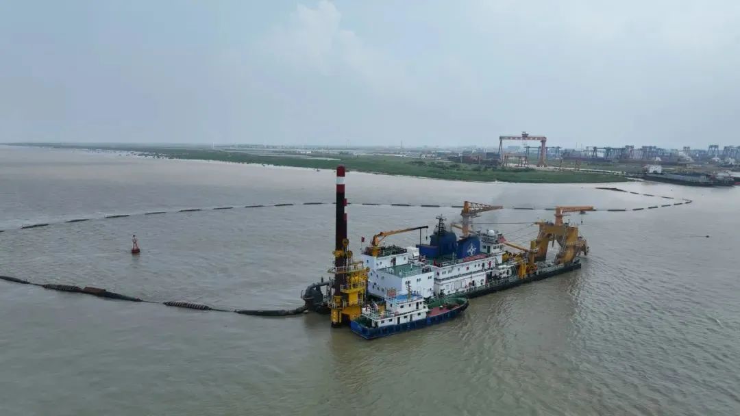 在鹽城港響水港區(qū)灌河口5萬噸級航道整治工程HD-SG1標段航道疏?,F(xiàn)場,“天虎號”絞吸挖泥船正在緊張作業(yè),在專業(yè)技術人員的操縱下,水底絞吸設備連續(xù)將水與泥沙混合物吸入吸盤,通過管道傳輸?shù)郊{泥區(qū)圍堰進行沉積……近日,為保障施工期間過往船舶航行和施工作業(yè)安全,項目管理公司與施工單位項目部共同謀劃,通過動態(tài)調整施工計劃,密切關注氣象信息等情況,妥善做好施工前準備,確保項目順利推進。