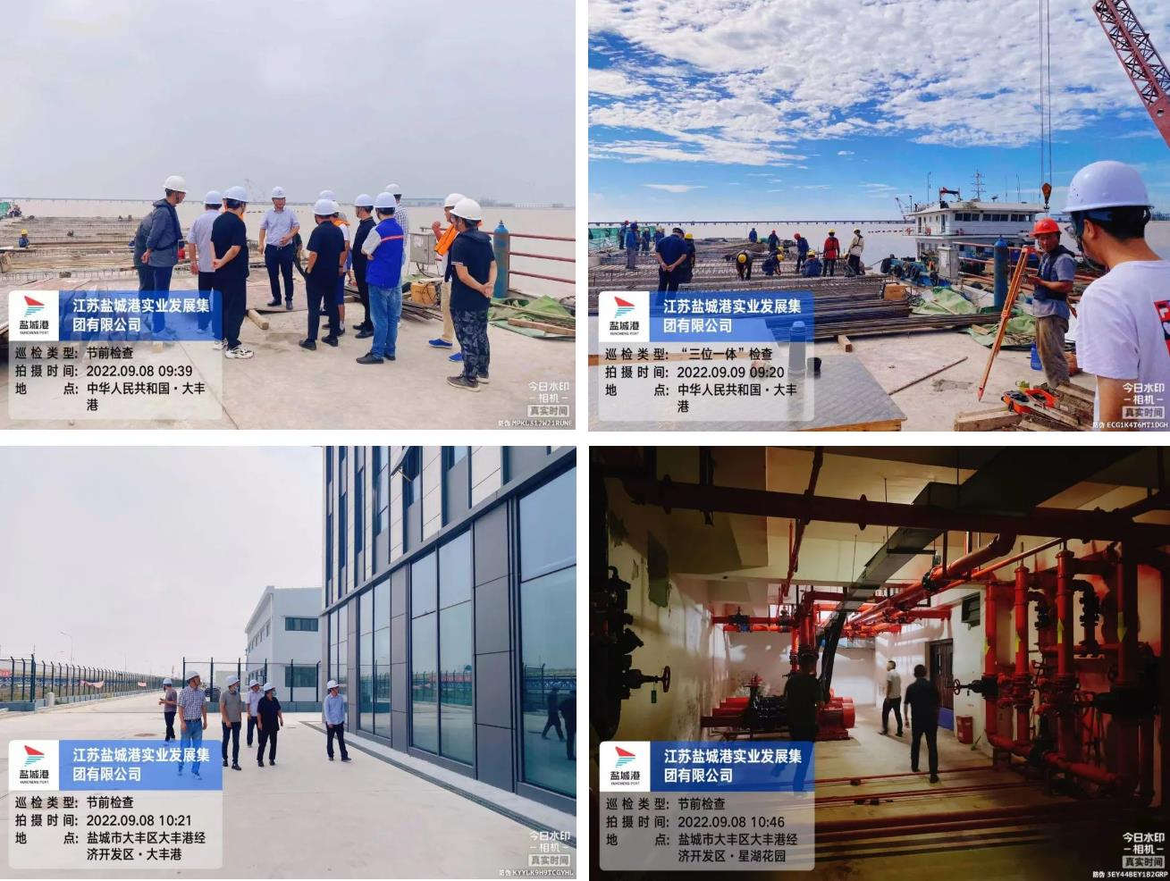在鹽城港大豐港區工作船安保設施工程、鹽城港大豐港區集裝箱碼頭堆場工程、鹽城港聯檢服務樓提升改造工程等在建項目現場,實業集團班子成員、建設公司安全環保部、工程管理部等有關安全條線人員,深入各在建項目現場開展中秋節節前安全生產大檢查。認真檢查節前安全生產防范措施落實、安全隱患排查整治、疫情防控措施、安全監管制度落實、工程安全管理和消防安全等情況,對檢查發現的問題提出整改要求,確保萬無一失。