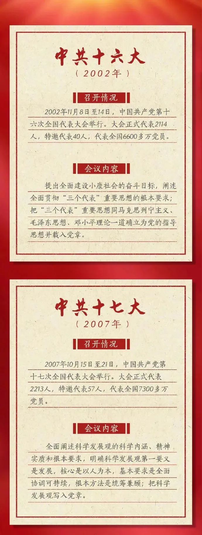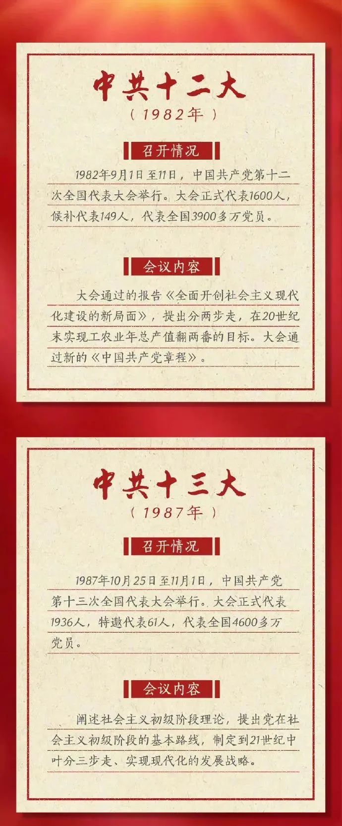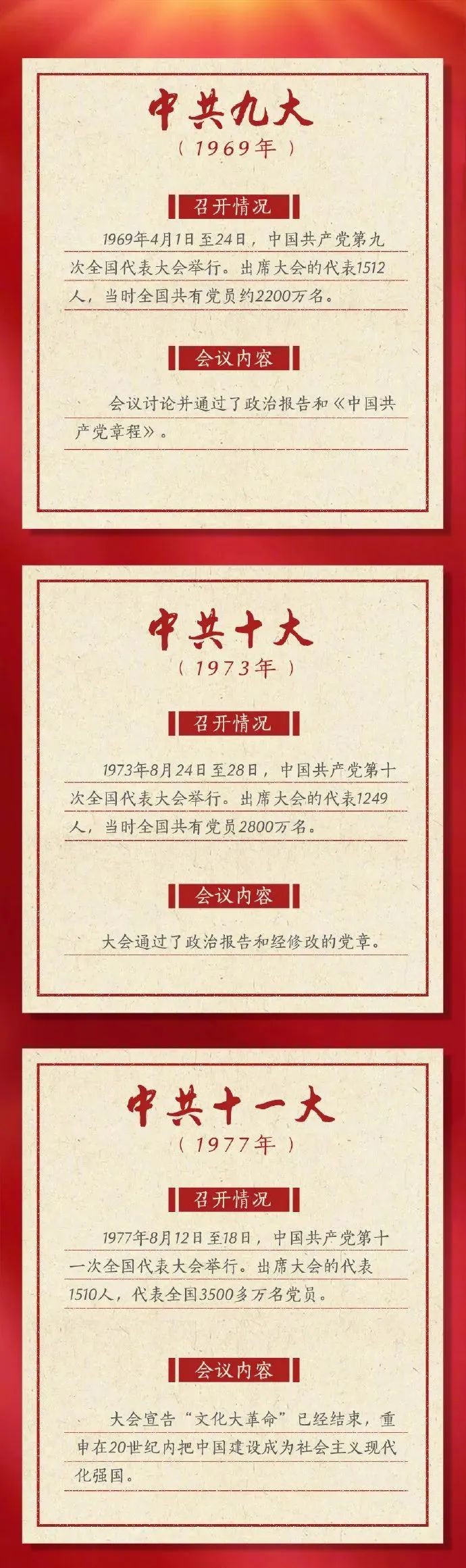 1921年,中國(guó)共產(chǎn)黨第一次全國(guó)代表大會(huì)召開,宣告中國(guó)共產(chǎn)黨正式成立。13名平均年齡28歲的年輕人,代表了全國(guó)50多名黨員。如今,中國(guó)共產(chǎn)黨黨員總數(shù)已超9671萬名。黨的二十大召開在即,九圖速覽中國(guó)共產(chǎn)黨19次黨代會(huì)“極簡(jiǎn)史”,收藏學(xué)習(xí)!