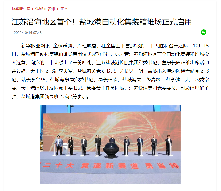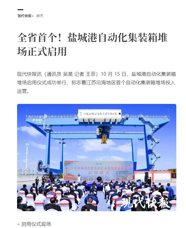 鹽城港大豐港區自動化集裝箱堆場正式啟用引發媒體廣泛關注