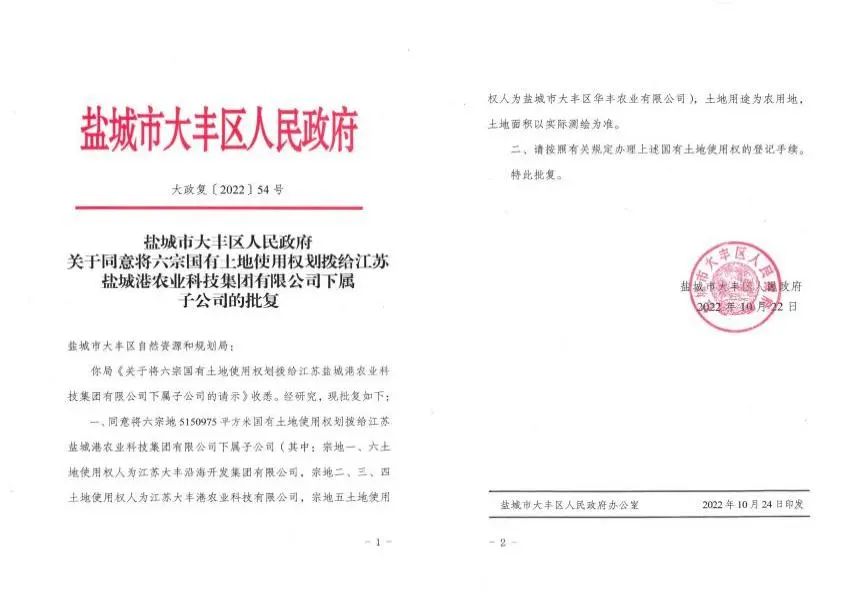 農(nóng)業(yè)科技集團成立辦證工作小組,專項推進辦證工作,積極主動對接大豐區(qū)政府、港區(qū)管委會屬地政府及市自然資源和規(guī)劃局、上海農(nóng)場、鹽業(yè)公司等四址相鄰單位,協(xié)調(diào)屬地政府批復、四址確認等權證辦理手續(xù),確保權證辦理工作有力有序推進。