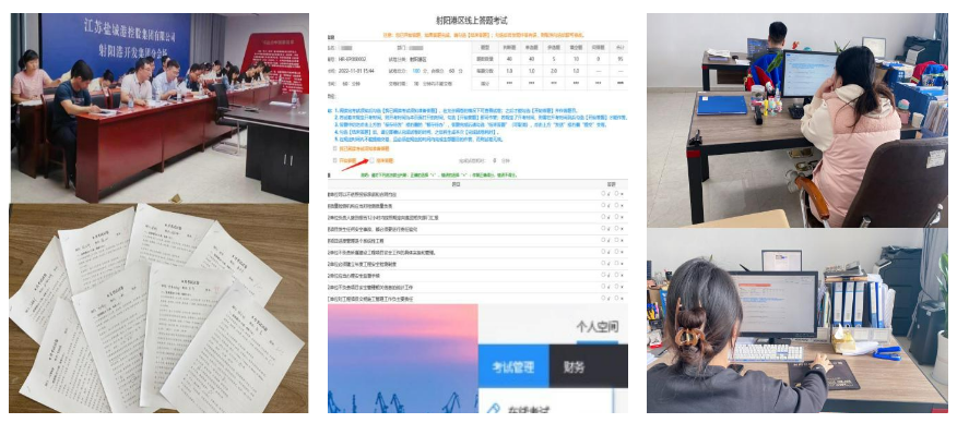為保證學習成效、檢驗員工學習成果,促進每位員工應知應會知識入腦入心,每周五組織全體員工進行閉卷考試??荚噧热菀悦咳諔獞獣R為主,側重考查員工對知識的理解與掌握情況,閱卷評分后在全公司范圍內通報公布,同時將考試成績納入績效考核。OA同步上線考試系統,員工可隨時隨地進行線上測驗。把考試作為檢驗學習成果的“試金石”和查找不足的“檢測儀”,真正促使員工通過學習提升思想意識、提升崗位技能、提升履職盡責的行動自覺,立足本職、奮發作為,為鹽城港高質量發展爭作貢獻。