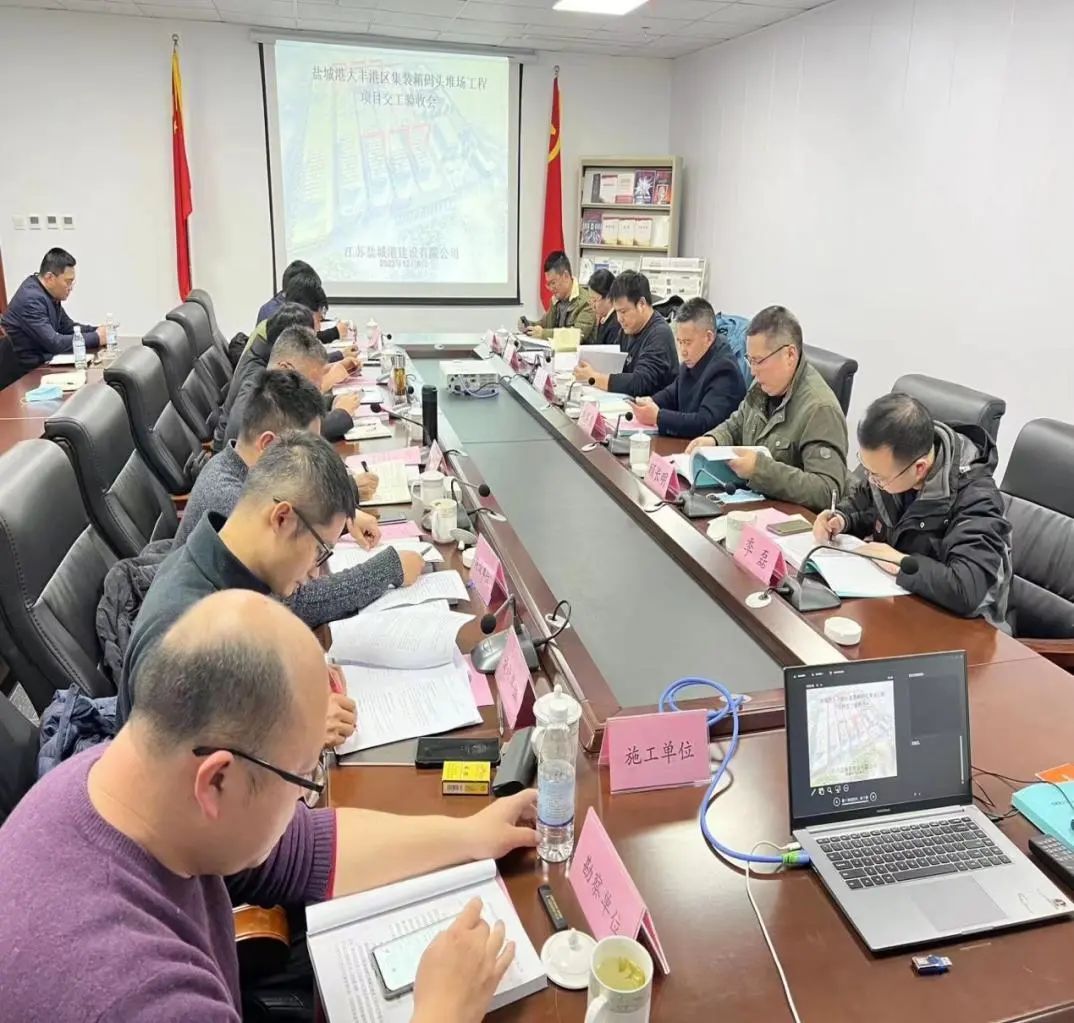 12月6日,鹽城港項目管理公司會同港口公司邀請鹽城市交通運輸局、鹽城市交通運輸綜合行政執法支隊、大豐區交通運輸局、鹽城港航運集團以及各參建單位參加鹽城港大豐港區集裝箱碼頭堆場項目交工驗收會議。