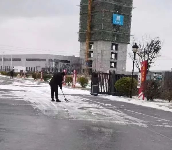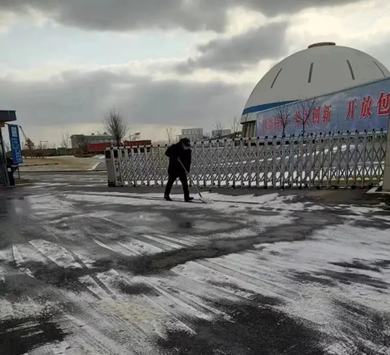 1月14日,鹽城迎來2023年第一場雪。為保障港區(qū)員工出行安全,確保港區(qū)安全生產(chǎn),實業(yè)集團物業(yè)公司立即啟動清雪除冰工作應(yīng)急預(yù)案,打響2023年除雪保暢“第一仗”。