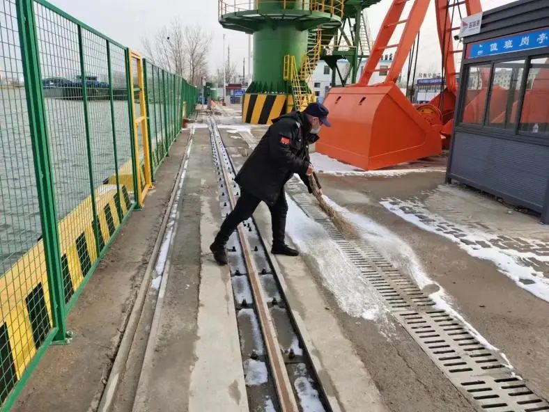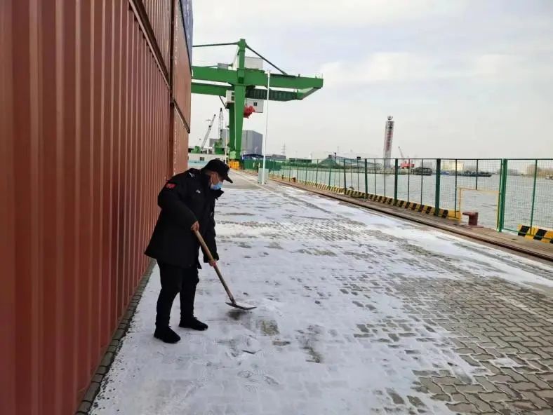 面對大雪這場嚴峻考驗,實業(yè)集團物業(yè)公司全體員工堅守崗位,嚴陣以待。在鹽城港各個港區(qū)內(nèi),各項目組負責人深入各物業(yè)服務(wù)點坐陣指揮,物業(yè)工作人員分工明確,高效清掃港區(qū)的積雪,確保路面無積雪結(jié)冰、安全通暢。