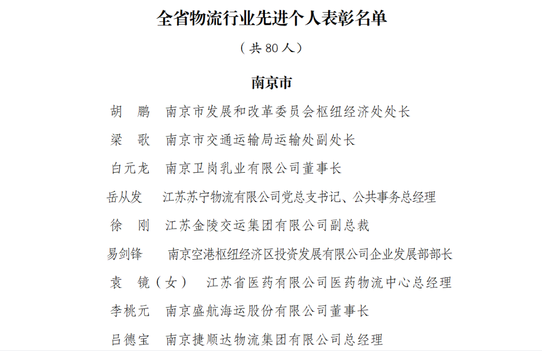 集團下屬單位和員工分別獲“2022年度江蘇省重點物流企業30強”“全省物流行業先進個人”榮譽表彰