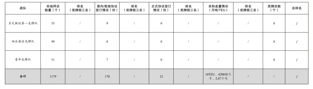 活動開展以來,累計拜訪客戶數(shù)量1179家,簽訂意向/框架協(xié)議數(shù)量170份,簽訂正式協(xié)議12份,實(shí)際走量10TEU、4200輛汽車、2.87萬噸。