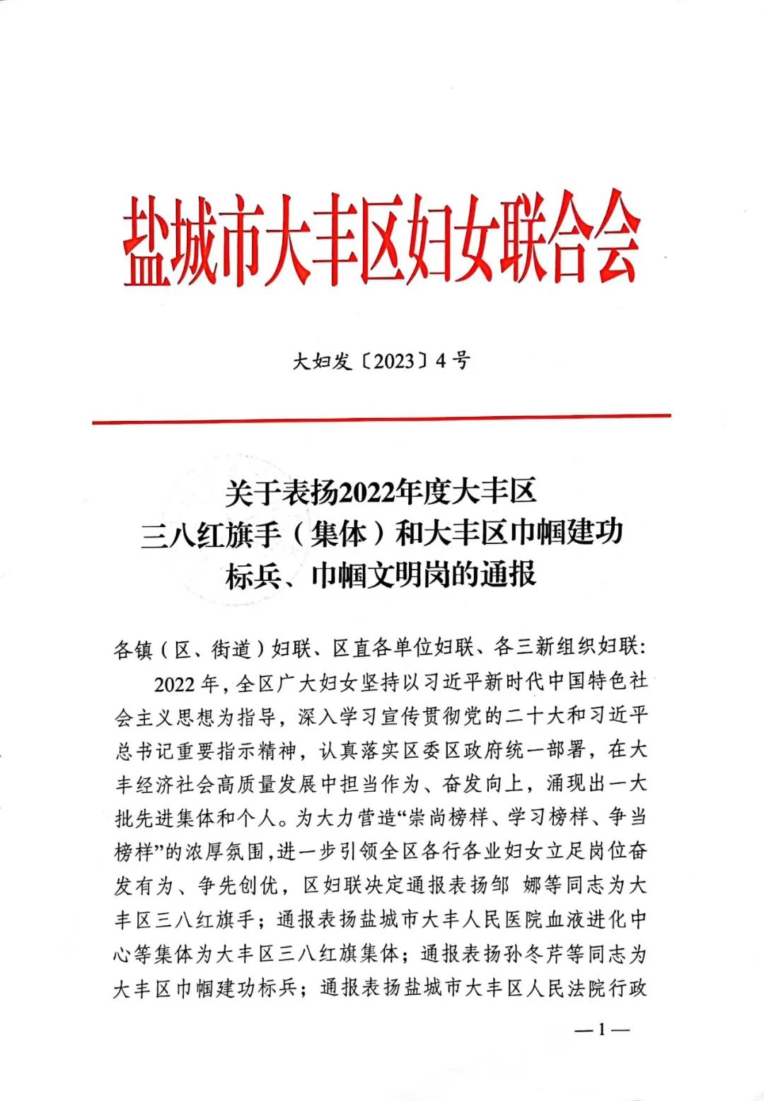 近日,大豐區(qū)婦女聯(lián)合會發(fā)表《關(guān)于表揚2022年度大豐區(qū)三八紅旗手(集體)和大豐區(qū)巾幗建功標兵、巾幗文明崗的通報》,鹽城港大豐港區(qū)成品油公司水上加油站“木蘭”班組榮獲“巾幗文明崗”榮譽稱號,班組成員王亞敏榮獲“三八紅旗手”榮譽稱號。