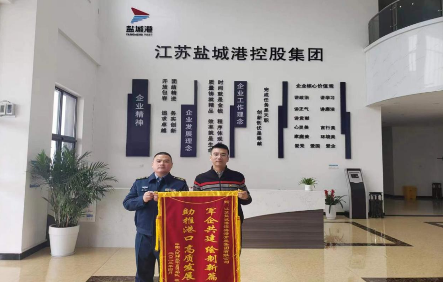 一直以來,鹽城港人具有著很深的“雙擁”情結,始終站在支持國防事業的高度,立足促進軍民融合的角度,確保軍企共建工作落地、落實、落細、落好。此次港區獲贈錦旗,是對港區工作的莫大支持和鼓勵。濱海港區將會以此為動力,不負重托、不辱使命,進一步深化軍民融合發展新格局,奮力為國防事業和駐地軍隊現代化建設作出新的更大貢獻。