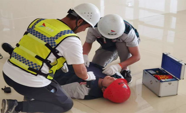 理論培訓結束后,各港區培訓人員在建湖港區大樓觀摩學習了觸電傷害安全事故應急演練。