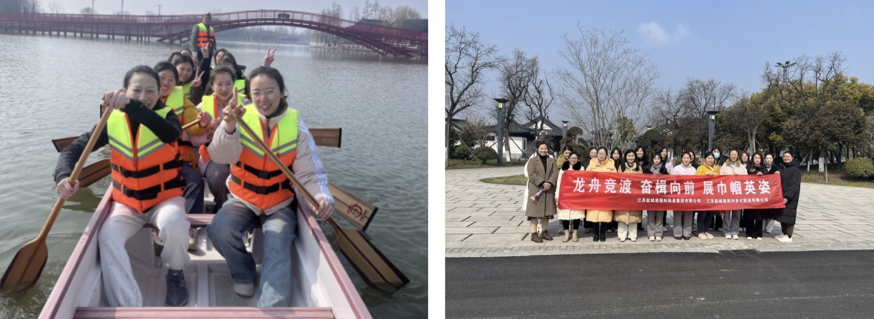 “一、二、一、二……”伴隨著密集的鼓聲與整齊劃一的口號聲,活動正式開始。兩支龍舟如離弦之箭,劈波斬浪、奮勇爭先。飛濺而起的河水拍打在選手們的身上,卻絲毫不減她們的斗志,碧波、龍舟在美麗的湖面上交織出一幅美麗動人的畫面。