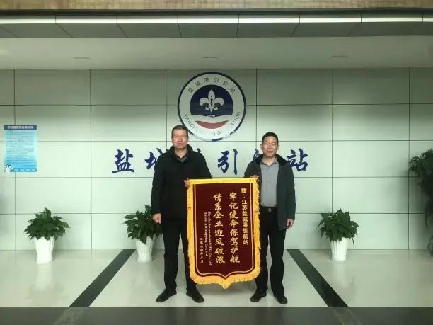 近日,“CL天京”輪船舶船東香港汭灃航運有限公司專程將“牢記使命保駕護航 情系企業迎風破浪”的錦旗送至鹽城港引航站,對我站提供的優質引航服務表示衷心感謝。