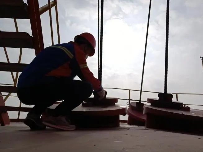 為契合“千匯018”7片118米葉片裝船,制定作業(yè)方案時(shí)已綜合考慮,其中點(diǎn)位觀測是重點(diǎn)環(huán)節(jié)也是撓頭的工作,誤差系數(shù)不能>0.05M,GPS測距儀雖然方便,但碼頭信號弱、光學(xué)量距點(diǎn)位信息混淆且誤差大。通過現(xiàn)場大家積極查閱相關(guān)資料,想出了“小妙招”,運(yùn)用“墊1架3側(cè)3”疊碼法,既創(chuàng)新了創(chuàng)新工藝方法,用最簡單的工具發(fā)揮最大的效能;又探索出新的非標(biāo)裝船模式,滿足了客戶的需求。