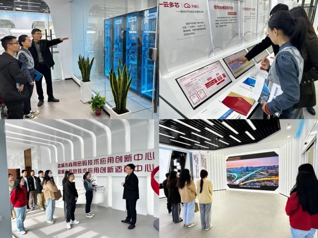 活動現(xiàn)場,大家參觀了鹽城市信息創(chuàng)新與密碼應(yīng)用技術(shù)保障基地展廳并觀看了信創(chuàng)基地的宣傳片。深入學(xué)習(xí)信息安全和密碼技術(shù)應(yīng)用方面的成就、網(wǎng)絡(luò)與安全領(lǐng)域的創(chuàng)新實力和技術(shù)優(yōu)勢,對維護(hù)國家安全有了更直觀、深刻、清晰的認(rèn)識。